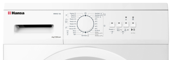 Quick wash 15' ECO 40-60 Quick wash 30' Quick wash 45' End in 3h End in 6h End in 9h Rinse & Spin Drain Only Spin Only Drrum Clean Cold wash 20℃